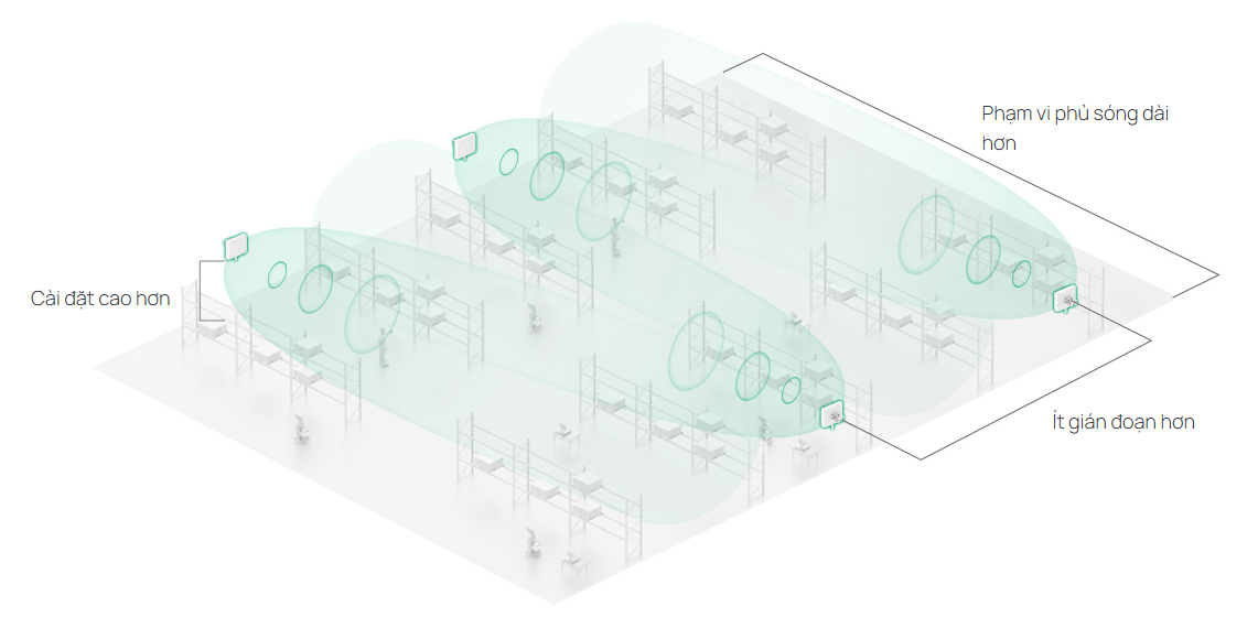 - Chuyển vùng liền mạch 802.11k/v/r: Đảm bảo kết nối không bị gián đoạn cho AGV và máy quét cầm tay. §