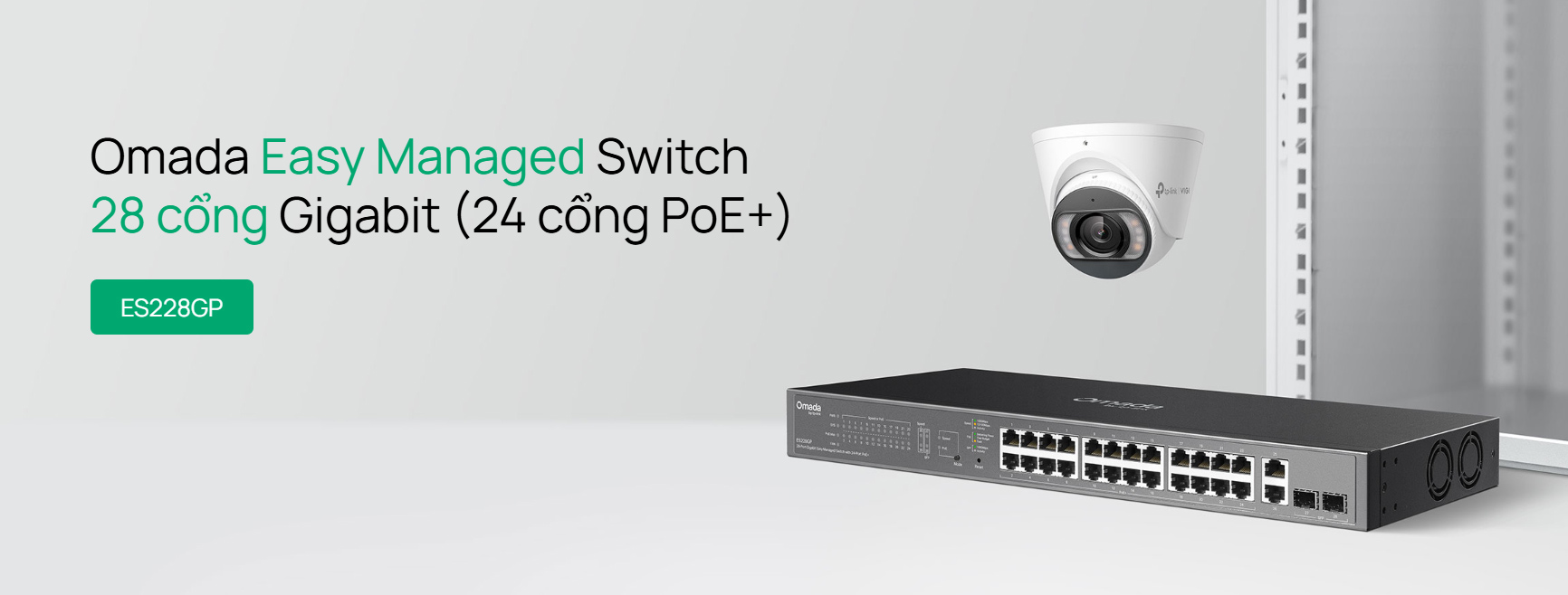 TP-Link Omada ES228GMP là một bộ chuyển mạch (switch) Gigabit Easy Managed 28 cổng, được thiết kế tối ưu cho hệ thống giám sát và mạng doanh nghiệp nhỏ (SMB) với công suất PoE lớn và khả năng quản lý linh hoạt