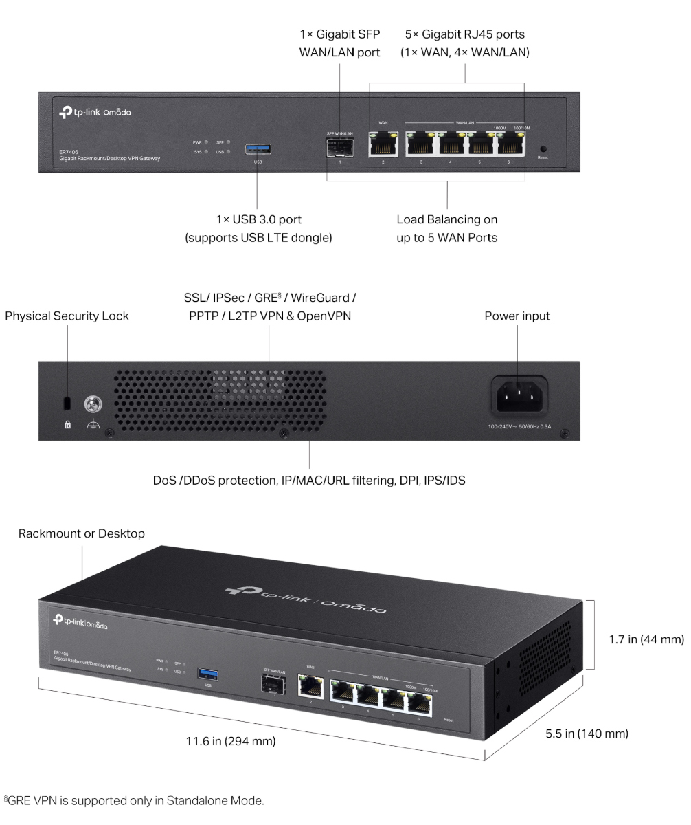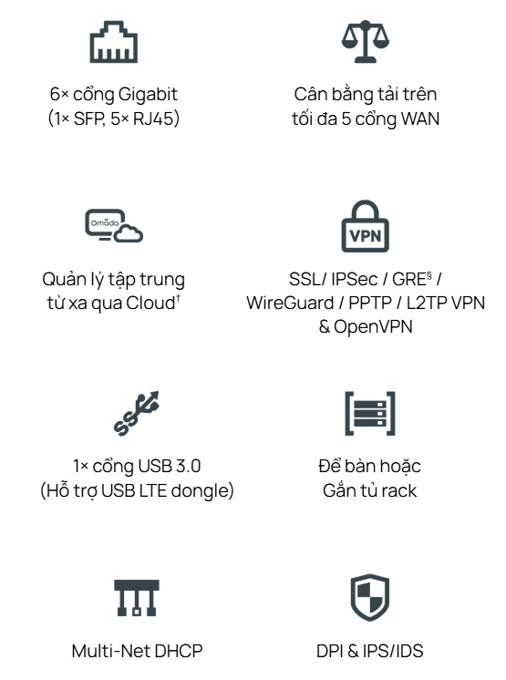 Gateway VPN Gigabit Omada Để bàn/ Gắn tủ Rack