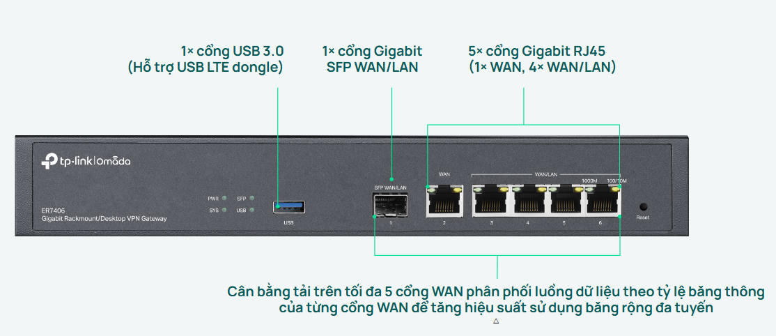 Tối đa 5 cổng WAN & 1 cổng USB WAN cho băng thông di động