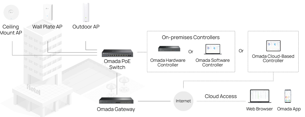 Dễ dàng xây dựng mạng đa gigabit cho trường học, khách sạn và văn phòng.