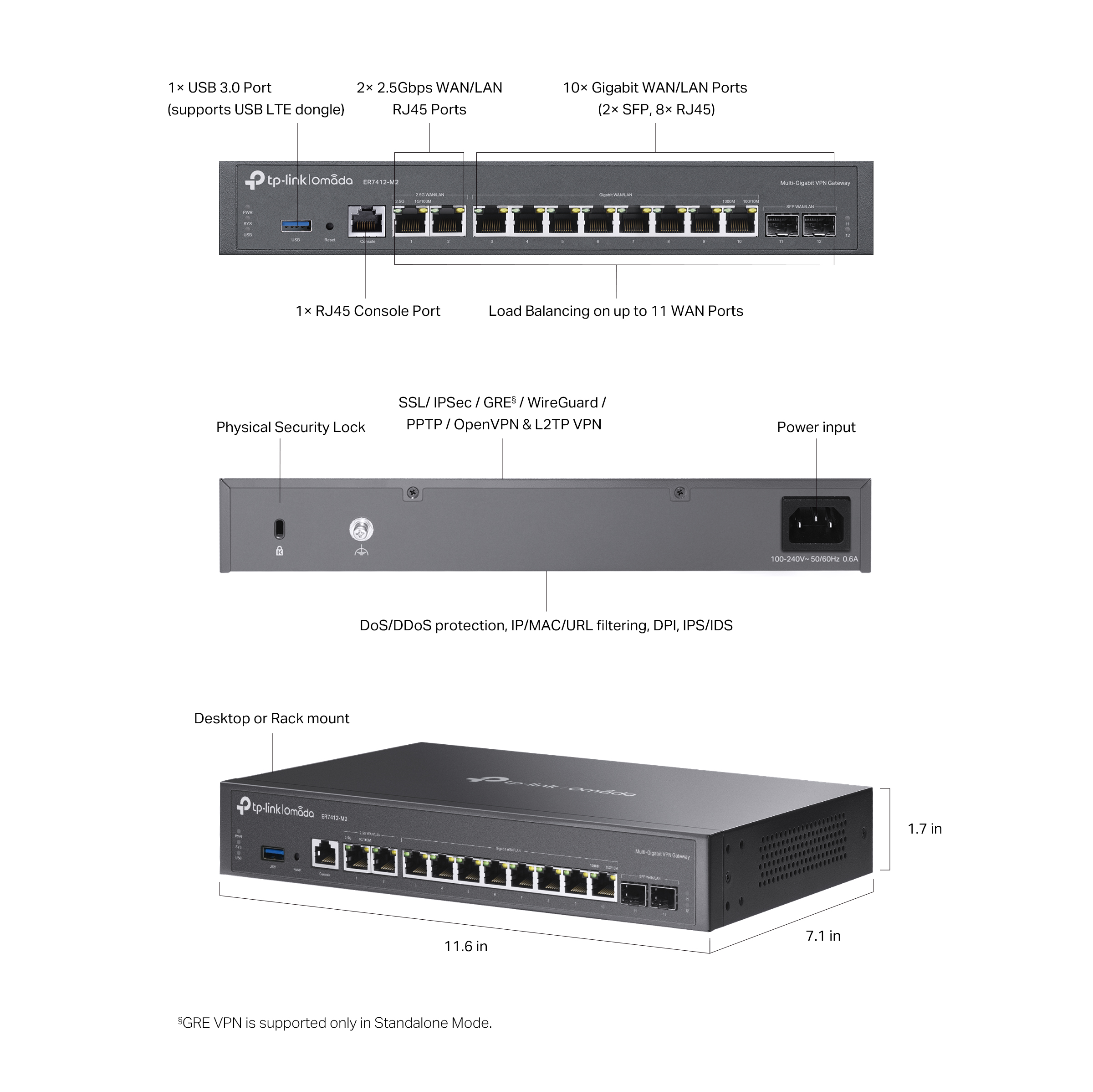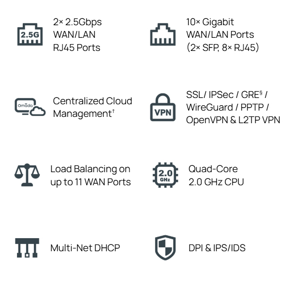 ‡ Để biết danh sách tương thích đầy đủ của modem 4G/3G, hãy truy cập https://www.tp-link.com/en/omada-router/compatibility/