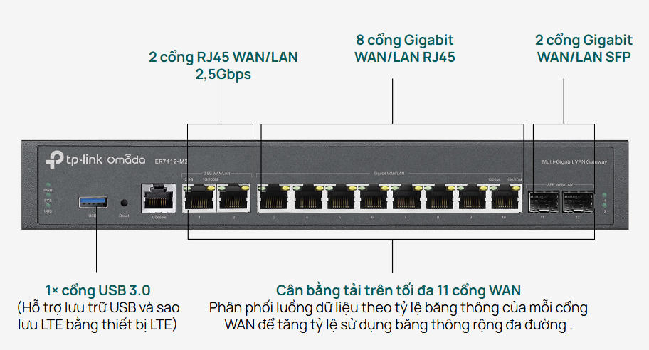 Lên đến 11 cổng WAN và một cổng USB WAN cho băng thông rộng di động