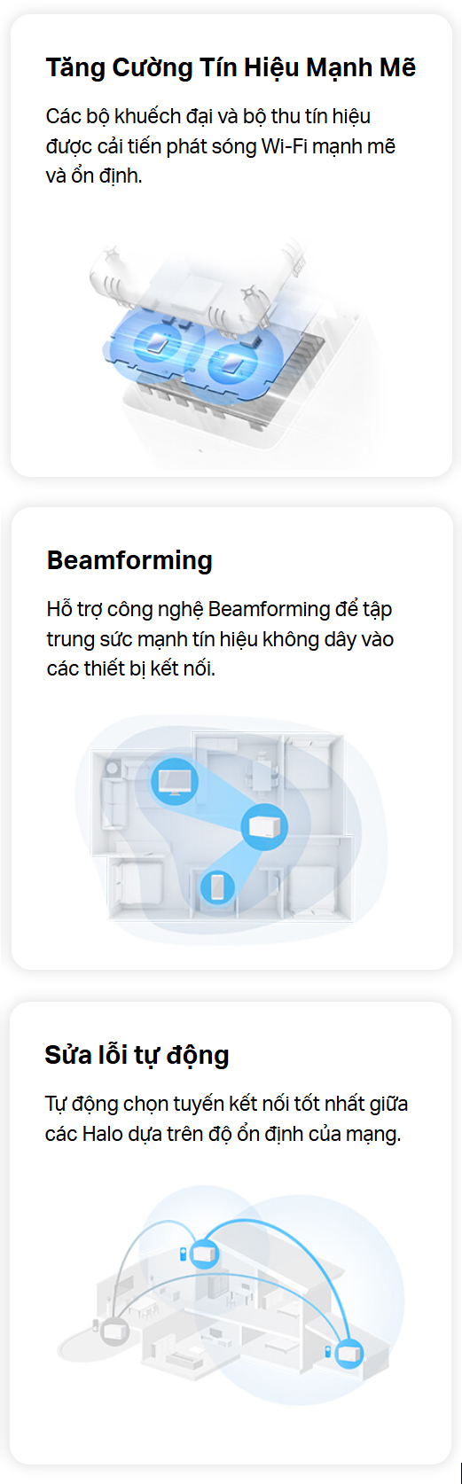 *Lưu ý rằng các dòng Halo H và S không thể hoạt động cùng nhau. Halo H80X tương thích với các đơn vị khác trong dòng Halo H để tạo mạng Mesh.