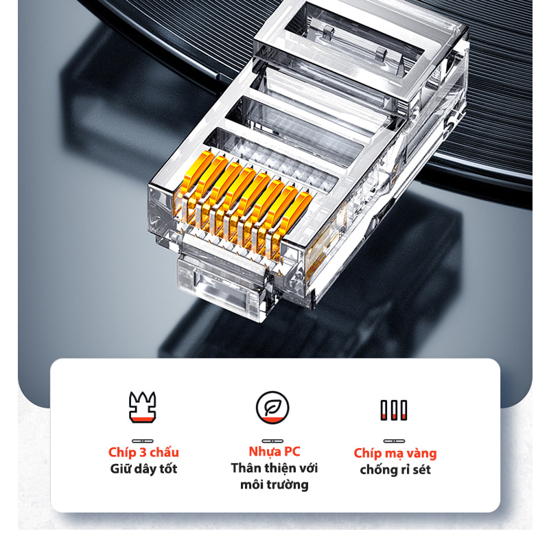 Đầu bấm mạng RJ45 loại tốt Ugreen 60558 bao gồm 1 túi chứa 100 hạt mạng cao cấp bên trong, tương thích với tất cả các loại cáp mạng cat6, cat6e hiện nay. Với chất liệu cao cấp, hạt mạng ugreen hạn chế tình trạng bị vỡ, gãy trong quá trình bấm dây giúp giảm thiểu tiêu hao tối đa cho các dự án và công trình.