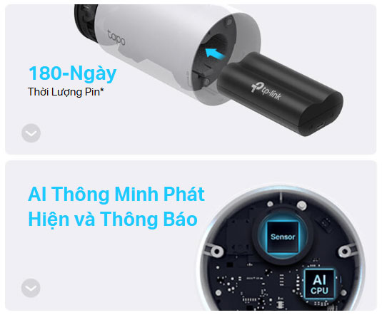 *Thời lượng pin lên đến 180 ngày được dựa trên TP-Link’s thử nghiệm trong phòng thí nghiệm kích hoạt 10-20 sự kiện mỗi ngày. Tuổi thọ pin thực tế có thể thay đổi tùy theo cài đặt thiết bị, cách sử dụng và các yếu tố môi trường.