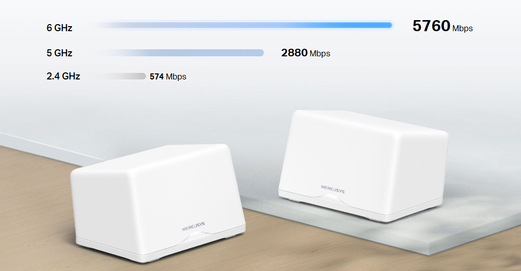 WiFi 7 nâng cấp QAM từ 1024 lên 4096, sử dụng các kênh 320 MHz rộng hơn và băng tần 6 GHz mới để giúp Halo H47BE đạt tốc độ 9214 Mbps. Bạn có thể tận hưởng mạng mượt mà với tốc độ nhanh này và băng tần sạch đặc biệt.‡