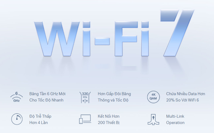 WiFi 7, tiêu chuẩn WiFi mới nhất, đã đến với hiệu suất đáng kinh ngạc—cung cấp thông lượng tăng tốc, độ trễ thấp hơn, khả năng chống nhiễu mạnh hơn và hiệu quả cao hơn. Tham gia cùng các chuyên gia và trải nghiệm hiệu suất tuyệt vời của thế hệ WiFi tiếp theo.△