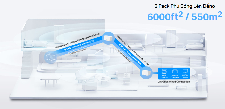 - Phạm Vi Phủ Sóng Toàn Nhà Multi-Gigabit: Các đơn vị mesh Halo hoạt động như một mạng thống nhất để phủ sóng toàn bộ ngôi nhà của bạn lên đến 6,000 ft²/550 m² (2-pack).‡