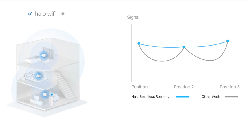 Hệ thống Halo tự động kết nối điện thoại hoặc máy tính bảng của bạn với nút nhanh nhất, mang lại trải nghiệm mạng thực sự liền mạch. Không còn tình trạng mất tín hiệu đột ngột hoặc WiFi bị lag khi bạn di chuyển quanh nhà.†