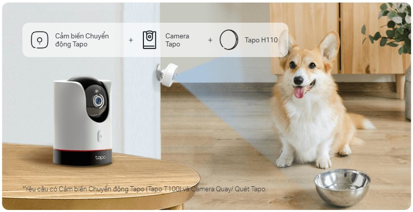Khi cảm biến chuyển động Tapo phát hiện chuyển động, camera Tapo sẽ kích hoạt chế độ tuần tra để quét khu vực, giúp bạn dễ dàng theo dõi thú cưng khi không ở nhà.