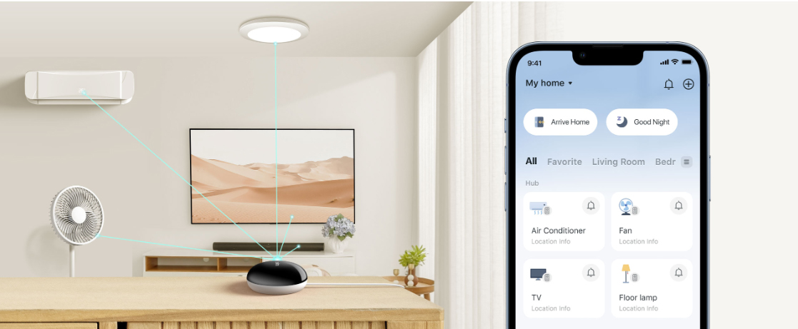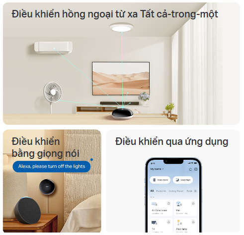 Kiểm soát tất cả các thiết bị hồng ngoại của bạn chỉ với một thiết bị duy nhất, bao gồm điều hòa, TV, quạt, đèn và đầu thu set-top box. Loại bỏ rắc rối khi phải dùng nhiều điều khiển truyền thống như hay thất lạc hoặc hết pin.
