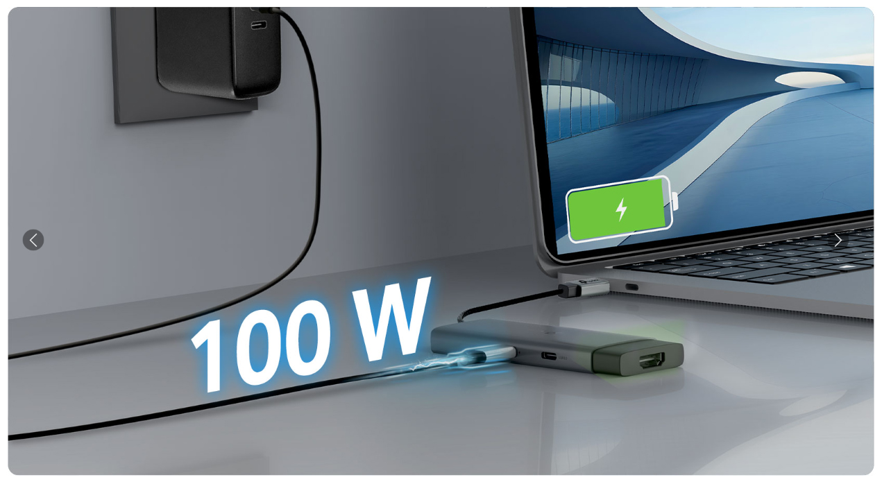 - Sạc nhanh 100W mạnh mẽ: Cắm dây sạc vào UH5020C và cung cấp liên tục lên đến 100W nguồn điện cho máy tính trong khi truyền tệp hoặc phát video.