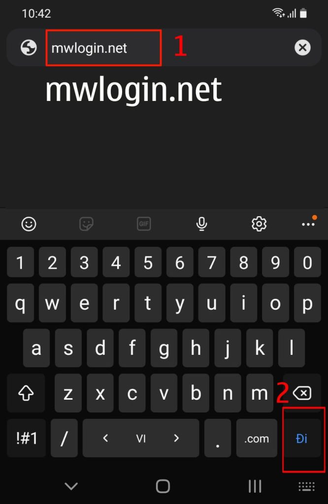 Nhập vào ô địa chỉ mwlogin.net sau đó bấm nút Đi trê phím điện thoại