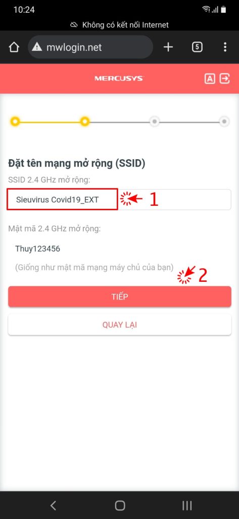 Đặt tên wifi do bộ kích sóng phát ra, mặc định sẽ là tên wifi gốc và thêm ký tự _EXT phía cuối. Nếu bạn muốn thay đổi thì nhập tên mới.
