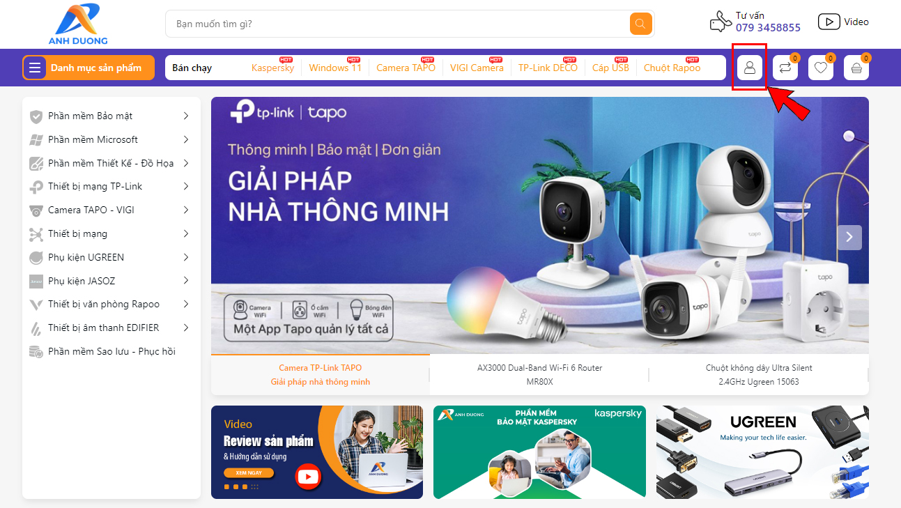 Bước 1: Tại trang chủ https://smarttechmall.vn bấm vào biểu tượng