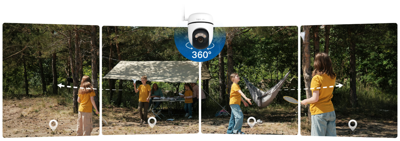 Tăng cường an ninh với góc nhìn ngang 360° và dọc 134°. Với chế độ tuần tra nâng cấp§, camera quét 360° và ghi hình theo lịch trình cài đặt, hoặc di chuyển giữa các điểm tùy chỉnh vào thời gian khác nhau.