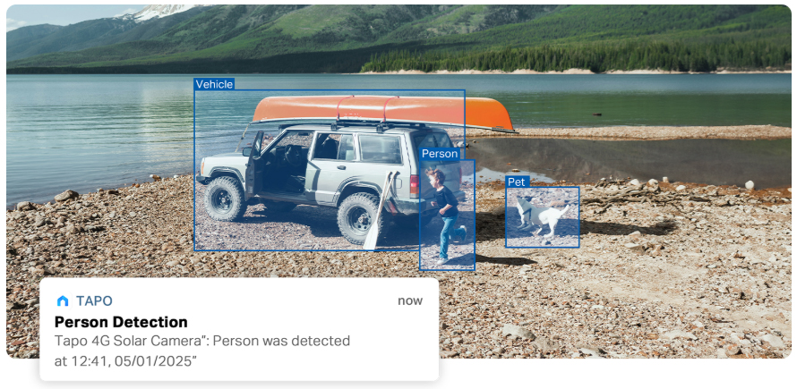 - Nhận Diện Người / Thú Cưng / Phương Tiện Miễn Phí: Camera nhận dạng chính xác người, thú cưng và phương tiện, giảm báo động giả và thông báo không cần thiết.