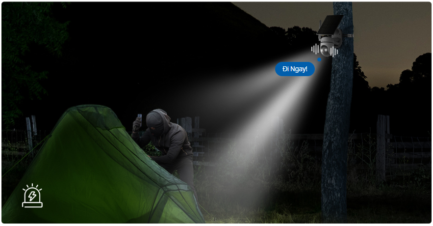 Ngăn chặn kẻ xâm nhập với âm thanh tùy chỉnh và điều chỉnh cường độ của đèn spotlight kép để chiếu sáng phù hợp.