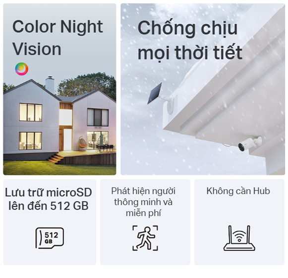- Tùy chọn lưu trữ linh hoạt: Lựa chọn từ lưu trữ microSD cục bộ lên đến 512GB hoặc dịch vụ đám mây Tapo Care an toàn để có thêm sự yên tâm.