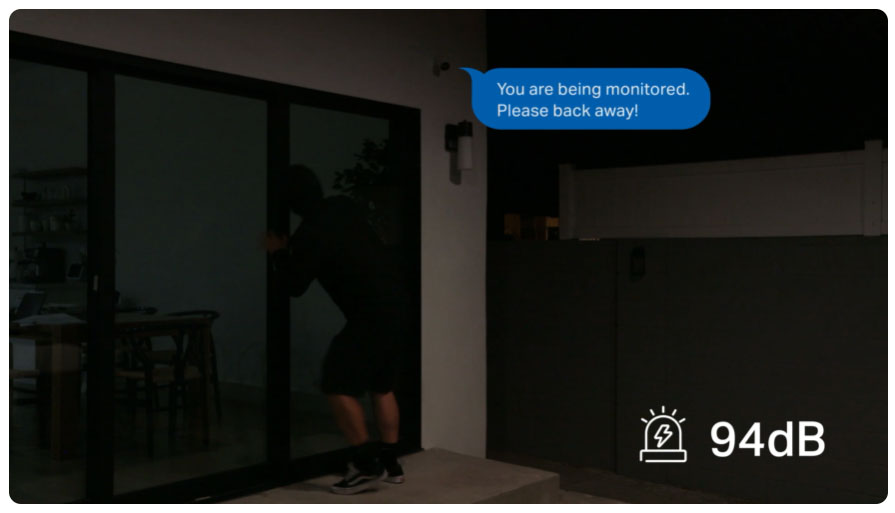 Ghi âm chuông báo động của riêng bạn với âm lượng lên đến 94 dB để xua đuổi những vị khách không mời. Điều chỉnh độ sáng của 4 đèn spotlight tích hợp để chiếu sáng theo ý muốn.