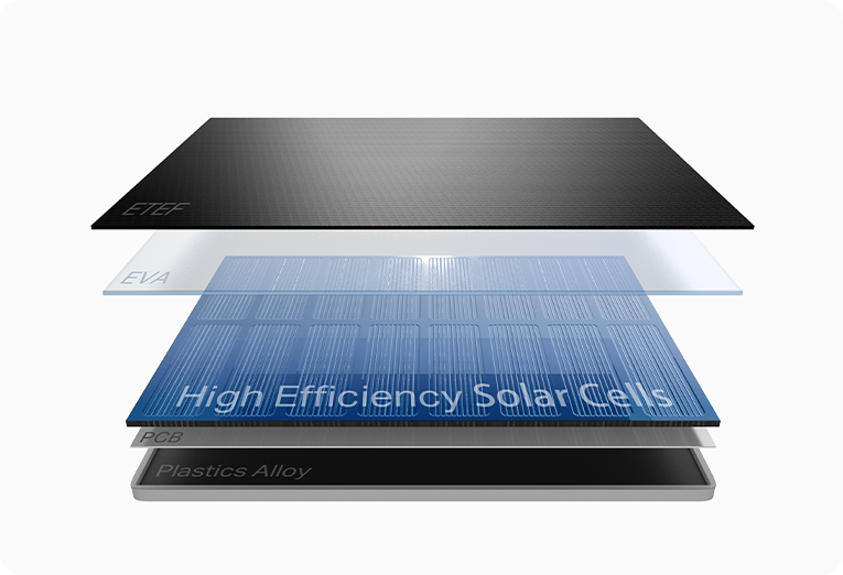 Tấm pin năng lượng mặt trời cao cấp được làm từ tế bào silicon đơn tinh thể thu năng lượng mặt trời hiệu quả hơn so với các tấm pin truyền thống, giúp thiết bị của bạn luôn được sạc và sẵn sàng.