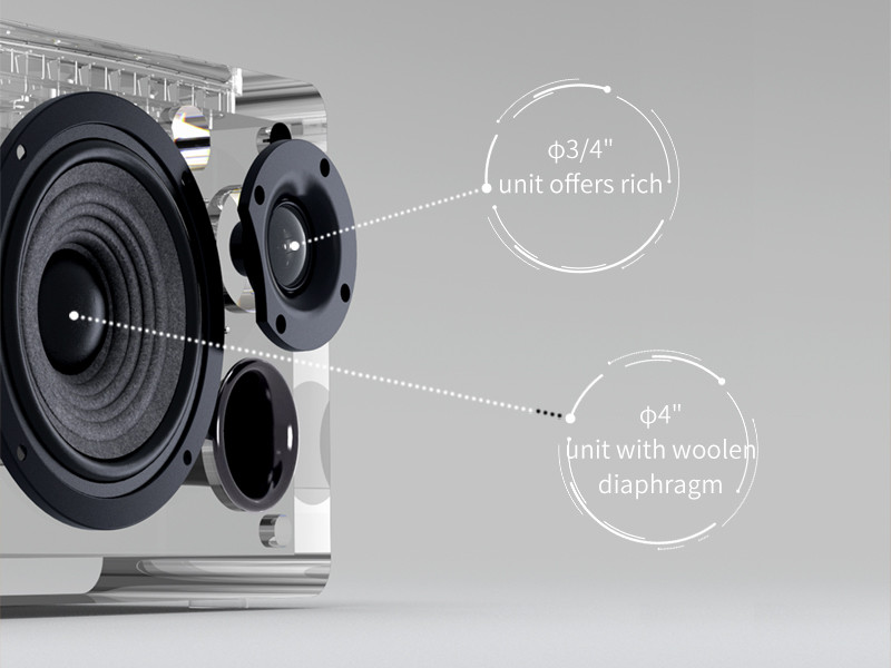 Thiết bị φ3/4″ mang đến âm bổng phong phú, êm dịu trong khi thiết bị φ4″ với màng loa bằng len mang đến âm trầm vang sâu.