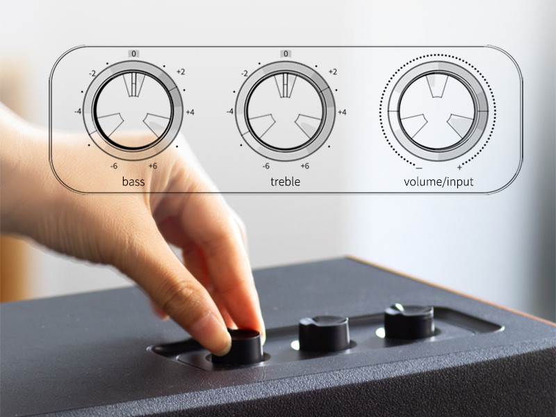 Chuyển đổi giữa các nguồn, mức EQ và âm lượng chỉ bằng một nút vặn đơn giản.