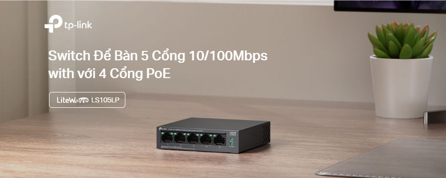 Switch Để Bàn 5 Cổng 10/100Mbps với 4 Cổng PoE