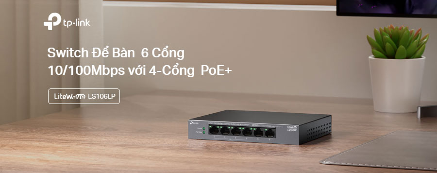 Switch Để Bàn 6 Cổng 10/100Mbps với 4 Cổng PoE