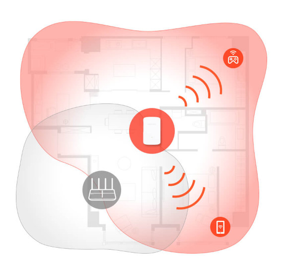 Loại Bỏ Các Vùng Chết WiFi — Tăng cường tín hiệu WiFi đến các khu vực trước đây không thể tiếp cận hoặc khó nối dây một cách hoàn hảo