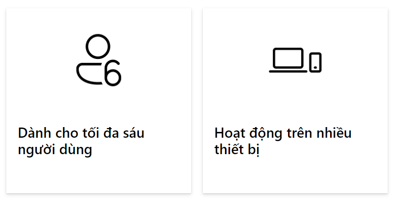 - Gói đăng ký sử dụng 12 tháng cho 1 - 6 user (tối đa 6 tài khoản Microsoft).