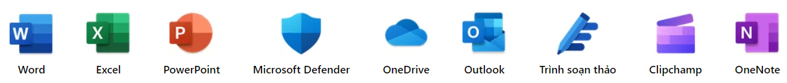 - Phần mềm bao gồm các ứng dụng Office: Word, Excel, PowerPoint, Outlook, Onedrive,...