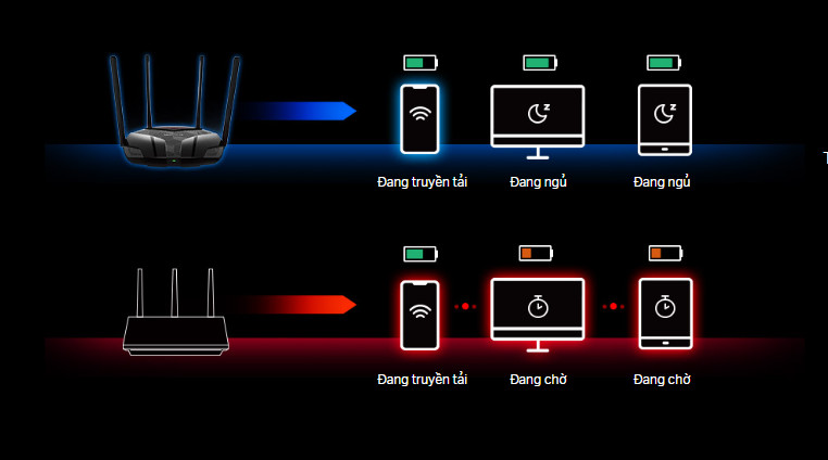 Với MU-MIMO: Truyền tải luồng dữ liệu đến nhiều thiết bị đồng thời, cải thiện hiệu quả mạng tổng thể