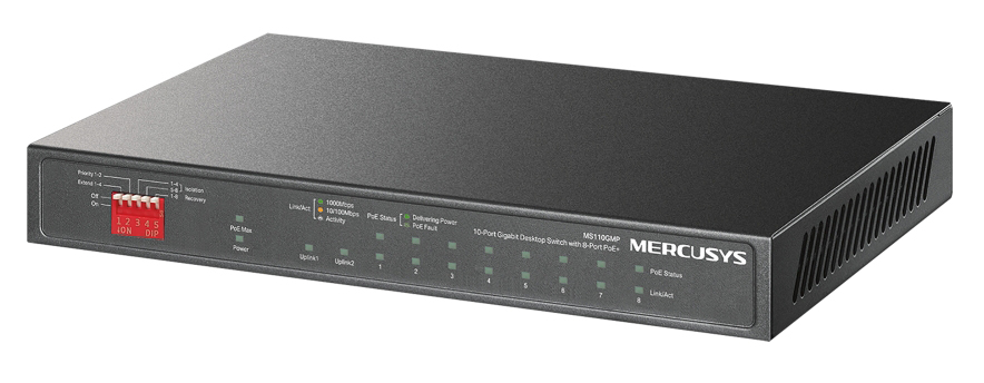 Là bộ chia mạng để bàn 10 cổng gigabit với 8 cổng PoE+, MS110GMP lý tưởng cho nhiều ứng dụng khác nhau như giám sát an ninh tại văn phòng, ký túc xá và các doanh nghiệp nhỏ.