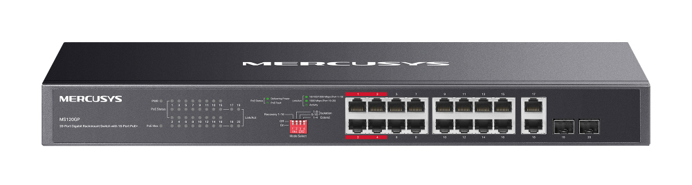 - Hỗ trợ PoE+ — Cấp nguồn trực tiếp cho tối đa 16 thiết bị thông qua cáp mạng, giảm nhu cầu sử dụng thêm nguồn điện.