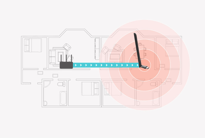 Một ăng ten độ lợi cao 5 dBi giúp tăng cường phạm vi phủ sóng xa hơn và định hướng chính xác hơn, duy trì kết nối không dây nhanh hơn và ổn định hơn.
