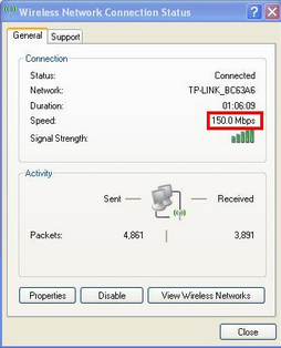 A: Như giải thích phía trên,150 Mbps/300Mbps đề xuất tốc độ đường truyền không dây tối đa. Tốc độ đường truyền mạng cục bộ được quyết định trên khả năng cổng LAN của router, đặc điểm của cáp enthernet và bộ nguồn enthernet của máy tính. Nếu router có cổng LAN 100mbps, tốc độ đường truyền mạng nội bộ sẽ hiển thị 100Mbps.
