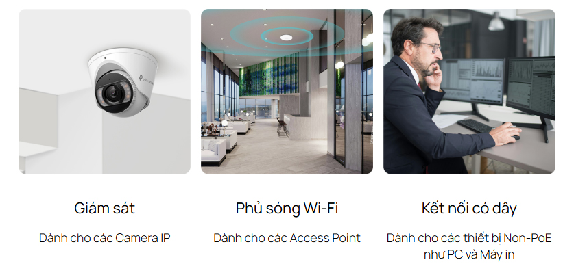*Việc tính toán Tổng công suất PoE Budget dựa trên các thử nghiệm trong phòng thí nghiệm. Tổng công suất PoE Budget thực tế không được đảm bảo và có thể thay đổi do giới hạn của thiết bị và các yếu tố môi trường.