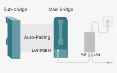 | 1. Bật nguồn cho cả hai cầu và kết nối một cầu với mạng thông qua cáp để biến nó thành cầu chính. | ![]() |
