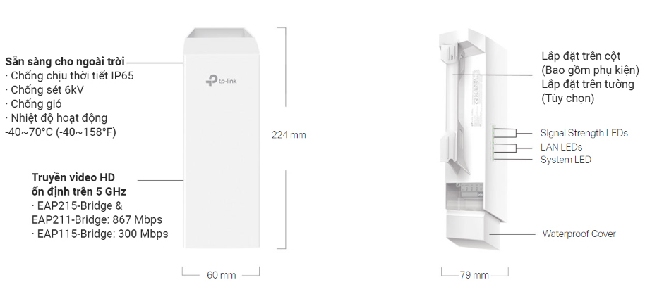 2. Tất cả sản phẩm đều được thử nghiệm trong môi trường ngoài trời thực tế. Phạm vi và thông lượng thực tế phụ thuộc vào công suất truyền và các yếu tố môi trường như nhiễu sóng không dây, chướng ngại vật, thời tiết, v.v.