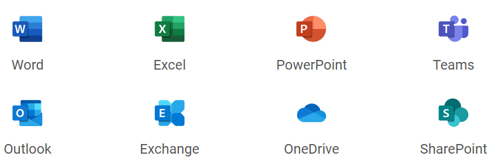 Teams, Bookings, Forms, Lists, Planner, SharePoint |