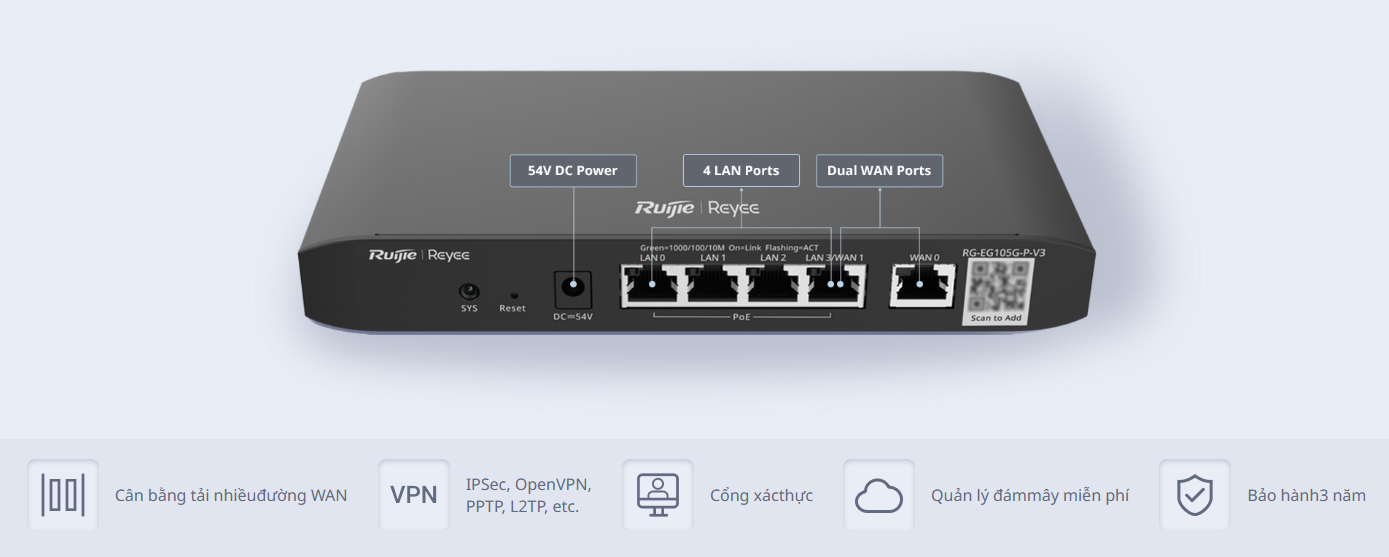 - Độ tin cậy cao và cân bằng tải thông qua các cổng WAN.
