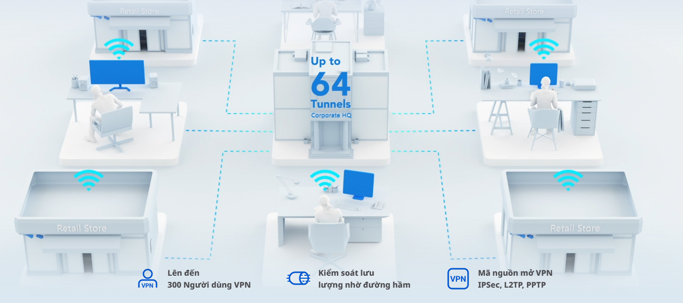 - Cung cấp VPN mạnh mẽ cho các chi nhánh và nhân viên làm việc từ xa