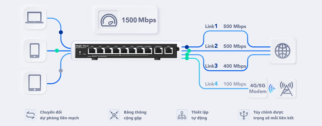 - Cân bằng tải đa WAN thông minh, mạnh mẽ