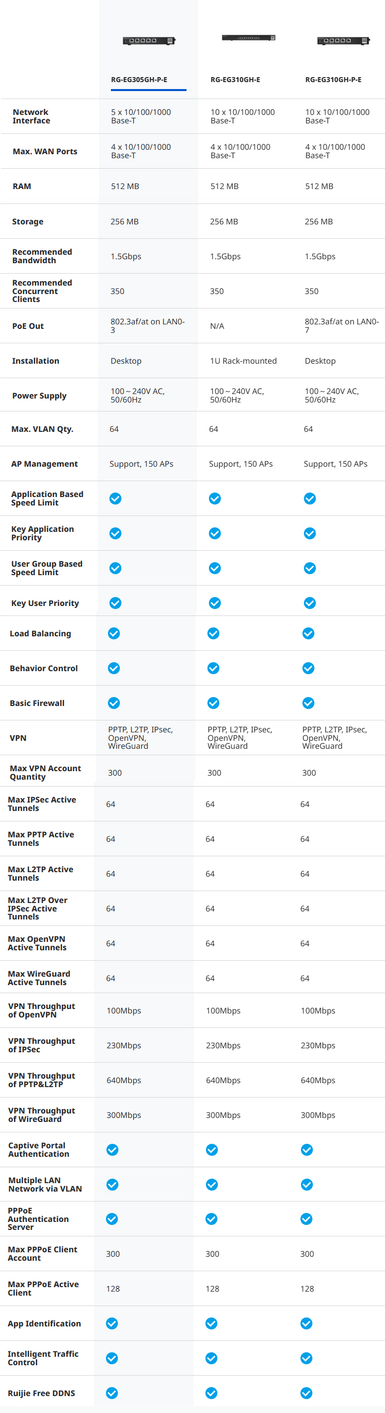 Router Ruijie RG-EG310GH-P-E hỗ trợ 300 user, băng thông 1.5Gbps, 10 port, poe 110W