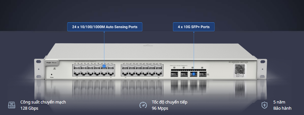 Công suất chuyển mạch 128 Gbps | Tốc độ chuyển tiếp 96Mpps | Bảo hành 5 năm