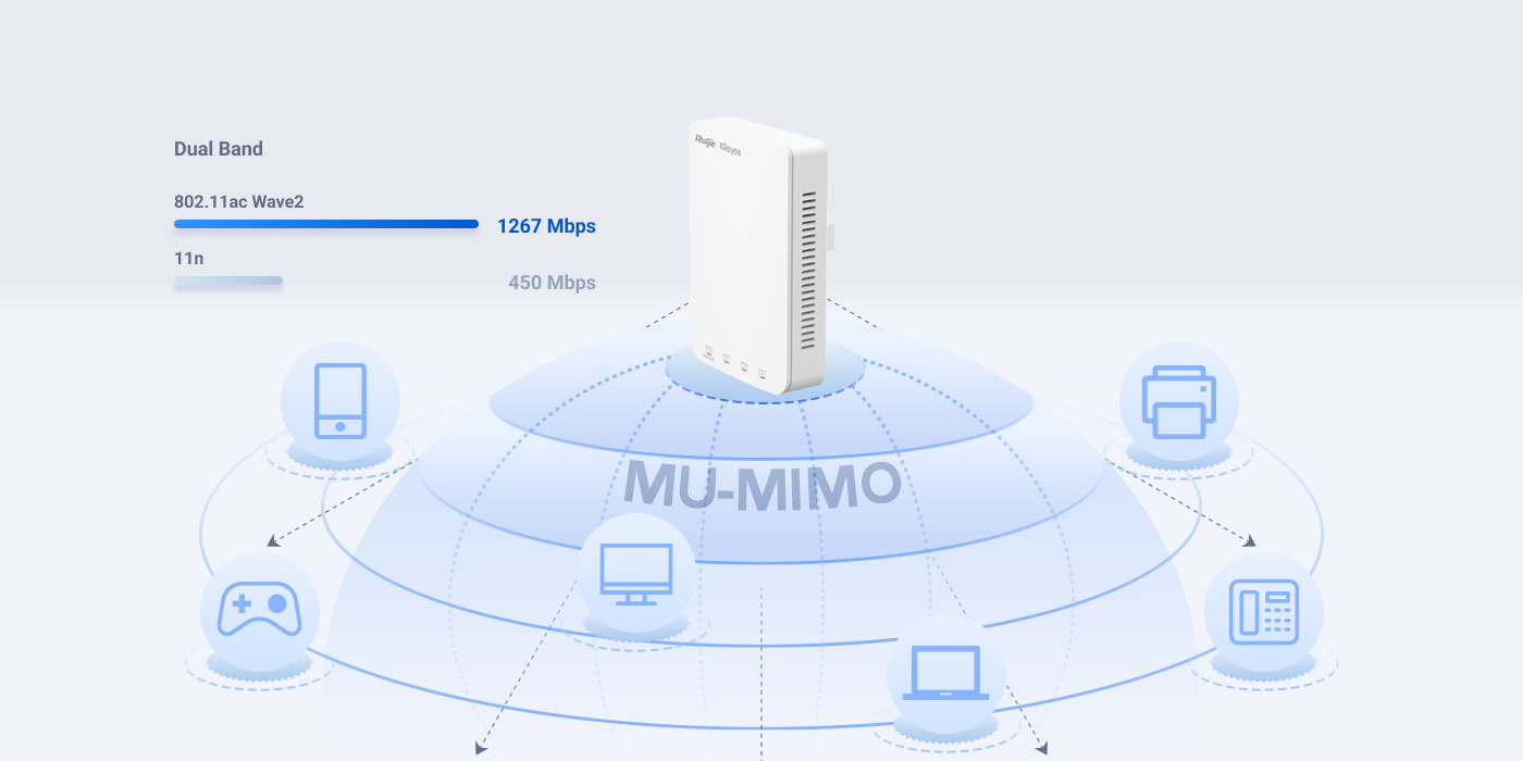 802.11ac Wave2 | PoE Pass Through | 2x2 MU-MIMO | Công nghệ Mesh của Reyee | Quản lý miễn phí trên đám mây
