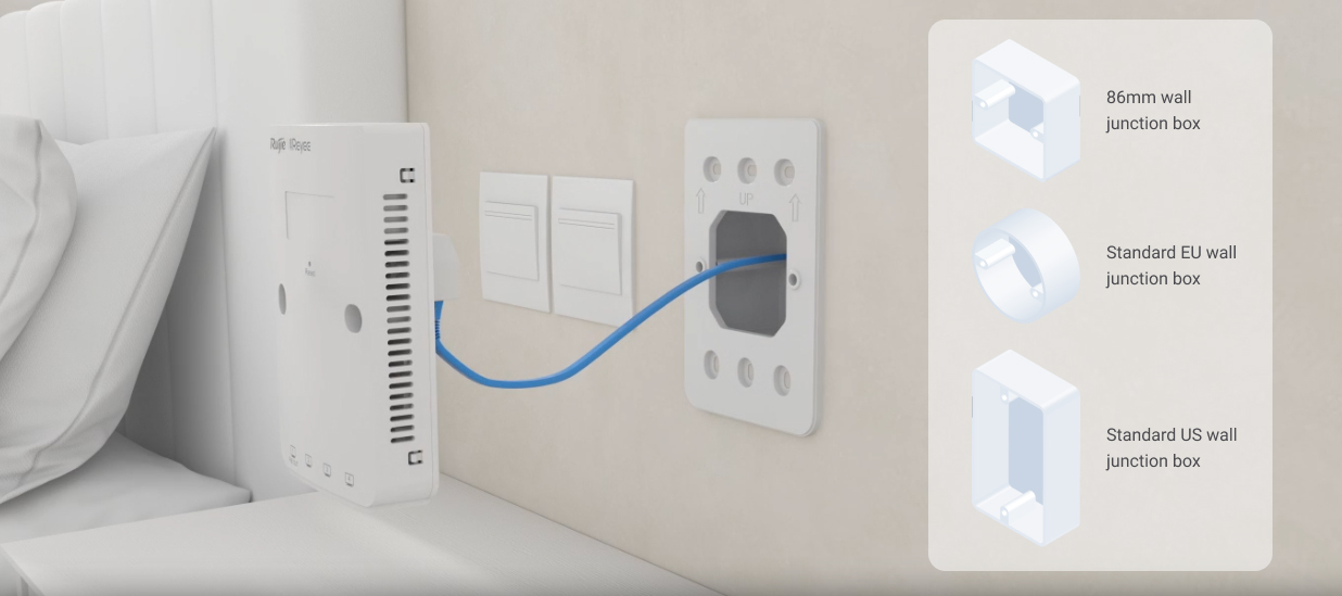 Cục phát wifi gắn âm tường 4 cổng lan RUIJIE RG-RAP1200(P) được thiết kế nhỏ gọn phù hợp với kích thước của ổ cắm chuẩn 86-type hiện nay. Bên cạnh đó, cục phát wifi được hỗ trợ 2 băng tần 2.4GHz và 5GHz, có khả năng truy cập không dây với tốc độ cao 400Mbps ở 2.4GHz và 867Mbps ở 5GHz và tốc độ 1267Mbps trên mỗi AP. Thiết bị phát wifi thích hợp với những không gian như căn hộ, cửa hàng bán lẻ...ít bị nhiễu sóng không dây với phạm vi phủ sóng tối ưu trong các không gian nhà.
