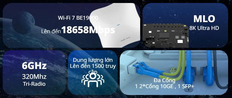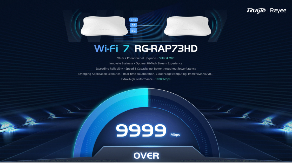 Bộ Phát Wifi 7 Ruijie Reyee RG-RAP73HD BE19000 | 3 Băng Tần | Tốc Độ 19000Mbps | 1500 User